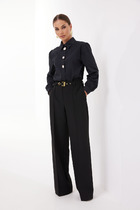 Особенностью модели является высокая посадка брюк с облеганием по фигуре.