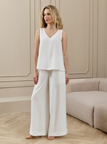 Брюки женские шикарного кроя "палаццо" на притачном поясе. Пояс по кругу на широкой резинке, что дает возможность чувствовать свободу движений. В боковых швах обработаны карманы, коротые дополняют функциональности модели и удобсто в носке.