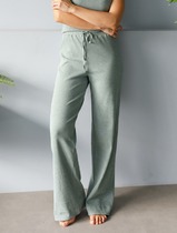 Брюки без пояса, расширенные к низу, по внутреннему срезу верхнего края расположена резинка. По переднему и заднему полотнищу брюк- талиевые вытачки. По талиевым вытачкам переда- декоративные пуговицы.