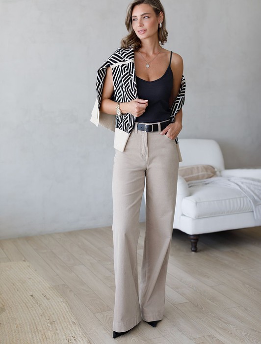 Состав: 98%Хлопок 2%ПУ Плотность: 310 Г/м2 Размер товара на первом фото: 42Брюки свободного кроя «трубы» выполнены из мягкого хлопкового микро-вельвета с добавлением эластана. Изделие комфортно садится по фигуре и не сковывает движения. Модель с пятью карманами, как у джинсов дополнена высококачественной фурнитурой с фирменным логотипом бренда. Идеально впишутся в повседневный образ, со свитером крупной вязки, курткой-косухой, ботинками на грубой подошве, челси и казаками.