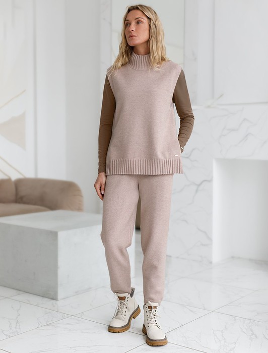 Состав: 52%ПАН (акрил) 33%ПЭ 8%ПУ 7%Кашемир Размер товара на первом фото: 42Брюки выполнены из мягкой пряжи с кашемиром. Изделие дополнено боковыми карманами и регулирующим шнуром на поясе. Мягкая пряжа очень приятная к телу, поддержит комфорт на протяжении всего дня, при этом не перегревая. Сочетается в костюме с D31.141, D31.147, D31.148, D31.149, D34.202, D34.203, D34.205, D34.206, D37.017, D37.018, D39.358, D39.359, D39.360