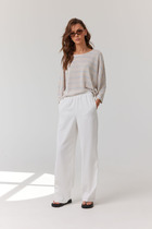 Лаконичные прямые брюки — основа базового гардероба. Выполнены из плотной костюмной ткани на основе вискозы, дышащей и приятной к телу. Отрезной пояс обеспечивает комфортную посадку по фигуре. По переду и сзади - декоративные клапаны декорированные пуговицами. Длина брюки - 98 см.