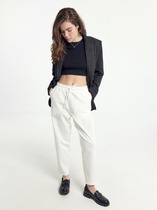 Удобные повседневные брюки из лёгкой ткани с вискозой в составе. Брюки свободного прилегания по бедрам и зауженные к низу. Пояс на эластичной тесьме с кулисой и втянутым шнурком. Вход в карман фигурный, наклонный к боковому шву.