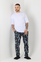 Спортивные мужские брюки из футера с лайкрой с оригинальными лампасами. Печать слева у кармана и печать на лампасах сверху