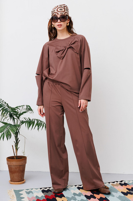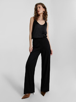 Брюки со стрелкой свободного кроя, верхний срез представлен широкой резинкой, с карманами.