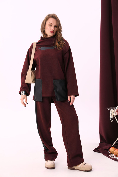 Брюки прямого силуэта с наклонными карманами к боковым швам и  лампасами из отделочной ткани. Пояс на резинке.