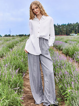 Брюки завышенной посадки из хлопкового полотна. На поясе в боковых швах карманы. Модель универсальная и может служить стильной базовой вещью в вашем гардеробе.