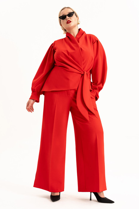 Практичные и функциональные брюки гармонично сочетают комфорт и современный стиль. Незаменимый элемент гардероба для тех, кто ценит удобство в сочетании с актуальным дизайном. Брюки с широкими штанинами палаццо выгодно подчеркивают женственные формы, а свободный крой обеспечивает удобство в любой ситуации. На брюках обработаны карманы в боковых швах, по талии пояс с застежкой на молнию и частично на резинке. Благодаря использованию высококачественных материалов, они обладают отличной плотностью фактуры, обеспечивая удобство и долговечность. Высокая посадка добавляет элегантности и стройности фигуре, а прямая модель идеально подходит для женщин с любым типом фигуры, а также высокого и низкого роста. Благодаря наличию резинки на талии обеспечивают идеальный силуэт и удобство при носке. Классическая модель для полных леди и девушек плюс сайз. Отличное решение для всех кто ищет стильные базовые брюки большого размера.