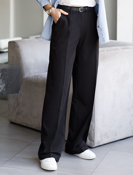 Состав: 60%ПЭ 36%Вис 4%ПУ Плотность: 210 Г/м2 Размер товара на первом фото: 42Брюки-палаццо выполнены из эластичной поливискозы. Легкая и струящаяся ткань идеально подойдет для повседневных образов. Модель с высокой посадкой визуально стройнит и вытягивает силуэт, удлиняет ноги. По верхнему краю спереди классически заложены складки, что придает свободы и простора в районе бедер. Свободный силуэт подходит для любой фигуры.