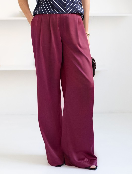 Состав: 97%ПЭ 3%ПУ Плотность: 190 Г/м2Брюки палаццо цвета бургунди из струящегося сатина, который придает образу эффектный и стильный вид. Мягкий сатин приятен к телу, в них комфортно на протяжении долгой носки. Брюки длиной в пол визуально вытягивают силуэт и подходят как для высоких, так и для женщин низкого роста. Модель идеально садится на большие размеры, не сковывая движений. Благородный материал обеспечивает не только привлекательный внешний вид, но и ощущение легкости в носке. Высокая посадка выгодно подчеркивает фигуру, добавляя изящества и современного шарма, они струятся при каждом движении.