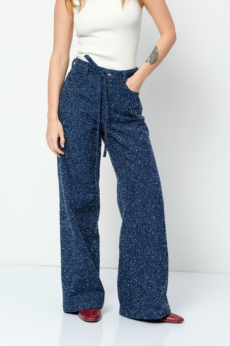 Широкие брюки из хлопкового джинса с перфорацией.