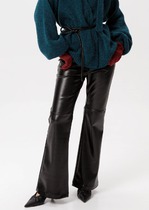 Детали: брюки с высокой посадкой, притачной пояс с резинкой и шнурами, без застежки, боковые карманы, передние части брюк со складками у пояса.