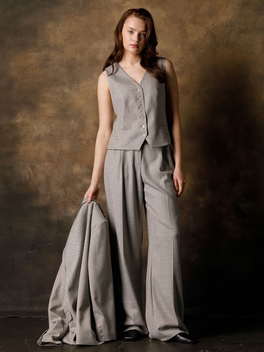 Модель прямого силуэта, на притачном поясе, со шлёвками. Сзади пояс присборен на резину. Спереди защипы и карманы в подрезных бочках. Застёжка на молнию и крючки на поясе. Сзади прорезной карман с листочкой и застёжкой на пуговицу. Ремень в комплект не входит.