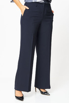 Модель прямого силуэта, низкой посадки, без пояса. Спереди по талии застрочены защипы, в подрезных бочках карманы. Застёжка на крючок и потайную пуговицу. Сзади прорезные карманы в рамку. По низу брюк в швы всталяются съёмные завязки.