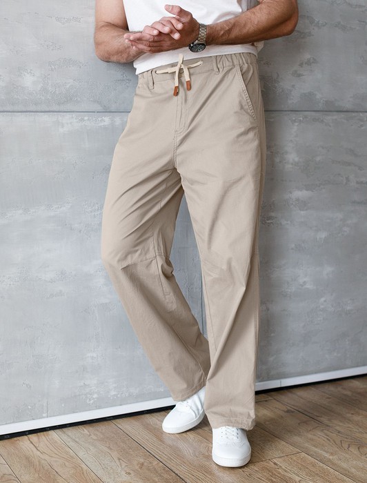 Состав: 98%Хлопок 2%ПУ Параметры модели на первом фото: Рост 190, бюст 108, талия 87, бедра 104Брюки с эластичным поясом и регулируемым шнурком выполнены из хлопкового твилла. Модель с защипами в области колен и фирменным патчем из эко-кожи. Эластичное изделие хорошо держит форму, обладает высокой воздухопроницаемостью и прочностью. Сохраняет форму и цвет в течении долгого времени, не сковывает движений.