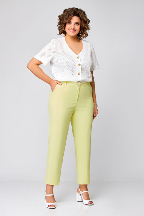 Брюки женские прямого силуэта, зауженные к низу. Выполнены  из турецкого денима со трейчем. Брюки  с притачным поясом и резинкой по спинке. По переду  обработаны боковые карманы. Застёжка  на тесьму-молнию, петлю и джинсовую пуговицу. На задних половинках  брюк расположены накладные карманы.