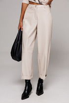 Брюки прямые свободного кроя, расширенные к низу. По переду кокетки с декоративной складкой и карманы. Пояс притачной, по спинке с резинкой. Посадка высокая. Длина изделия 100 см. Длина изделия по шаговому шву 73 см.