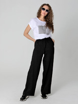 Брюки с комфортной посадкой на талии, которую обеспечивает пояс на резинке. Модель имеет функциональные карманы в боковых швах. Брючины оканчиваются широкими манжетами на резинке.