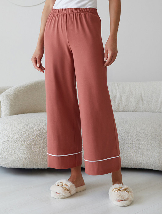 Контрастный кант по низу добавляет стильный акцент и возможность сочетать с белыми футболками нашего бренда. Эти брючки идеально подойдут тем, кто ищет стильное решение с учетом комфорта и удобства, в них вы будете женственны и утонченны даже в домашней обстановке.