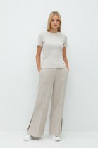 Vilatte Прямые брюки из фактурного трикотажа в рубчик D44.121 бежевый меланж