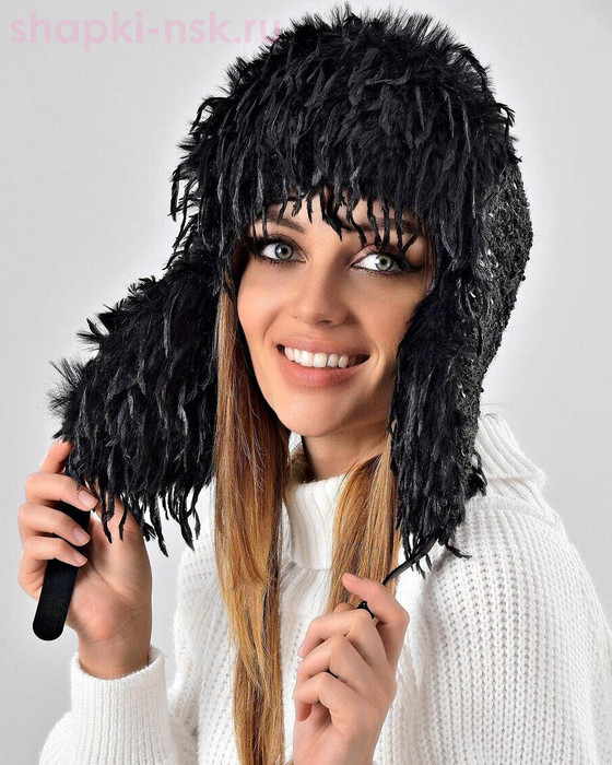 Совместные покупки Нижневартовск Женские аксессуары Шапки — Букле пайетка страус Ушанка флис (56-58)