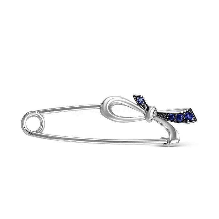 Булавка из серебра с фианитами родированная - Бант б-752р208