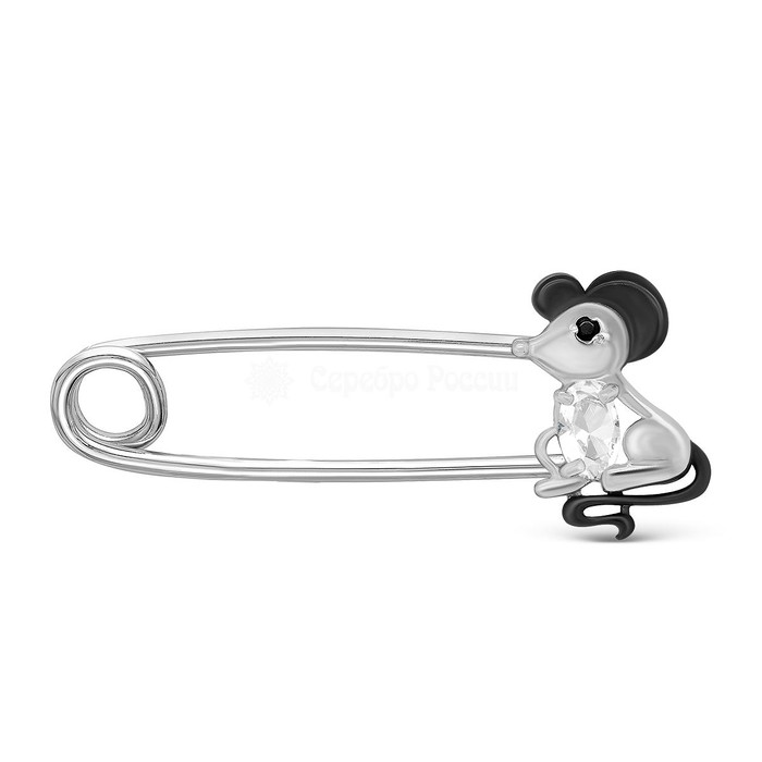 Булавка из серебра с фианитами родированная - Мышка б-751р200