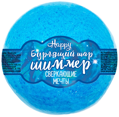 Бурлящий шар для ванн с шиммером Happy "Сверкающие мечты" 120 г (голубой)
