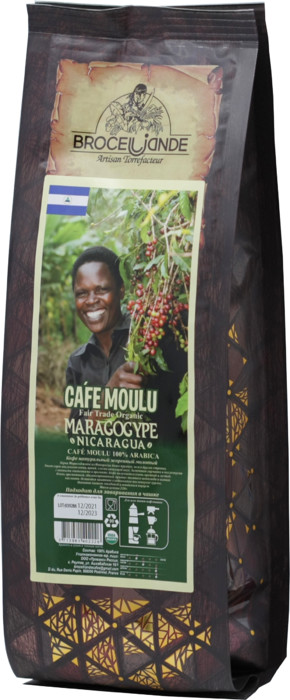 Кофе натуральный молотый. Состав: Арабика Maragogype.Зёрна арабики Марагоджип из Никарагуа одни из самых крупных. Этот сорт отличает очень яркий, слегка вяжущий вкус. В послевусии хорошо чувствуется благородная горчинка, а аромат удивляет винными оттенками и пряностями. Кофе получается очень крепкий и густой с нотками темного шоколада и какао-бобов.