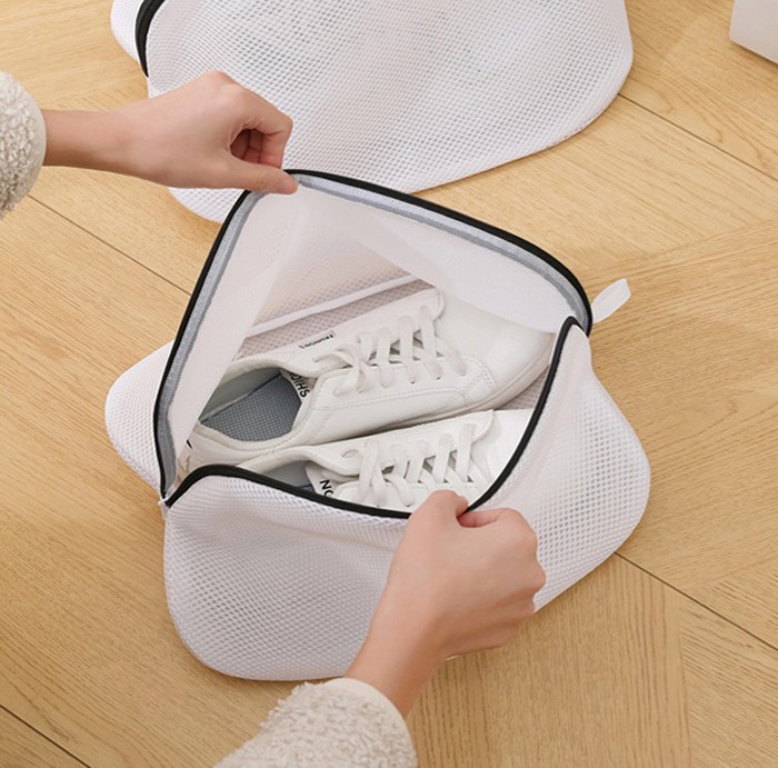 Прочный сетчатый мешок, который защитит вашу обувь и стиральную машину во время стирки, полоскания или отжима. Молния даже имеет специальную крышку для язычка, чтобы защитить другое белье и вашу стиральную машину.Мешок для стирки обуви в стиральной машине позволяет отстирать кроссовки, кеды и другую обувь без повреждения барабана стиральной машины и без деформации самой обуви.Он имеет вместительный размер, чтобы можно было поместить в него обувь до 45 размера.