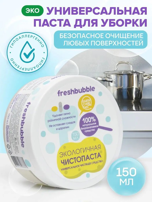 Чисто Паста - это абсолютно натуральное универсальное средство для чистки любых поверхностей: варочных панелей (стеклокерамические, металлические, эмалированные), кафеля, посуды, хромированных смесителей.