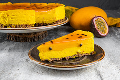 Сливочный чизкейк на основе коржа из песочного печенья и нежной творожной массы, сочетающий в себе кислинку маракуйи и сладость манго.