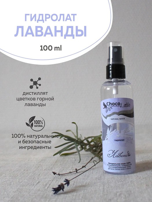 ** Описание: Вода получаемая в процессе водно паровой дистилляции лавандового масла из цветков лаванды Lavandula Angustifolia. Содержит не менее, чем 0,1% лавандового масла. Не содержит искусственных добавок, красителей и консервантов.