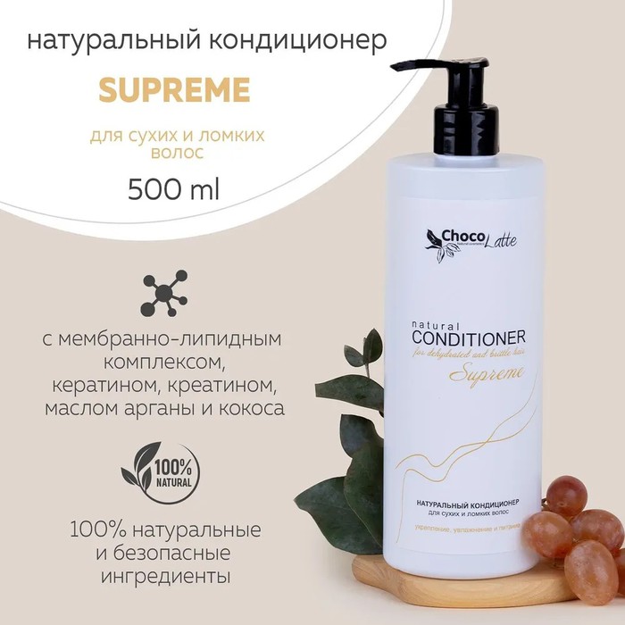 Натуральный кондиционер SUPREME обеспечивает глубокое увлажнение и питание волос. Смягчает и укрепляет волосы, предотвращает сечение кончиков. Оказывает антистатическое действие, облегчает расчесывание и укладку. Волосы приобретают объем и блеск, становятся мягкими, эластичными и шелковистыми
