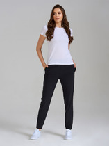 Мужские спортивные брюки из трикотажного полотна на манжете с удобными молниями на карманах. Дополнены шнурком для регулировки посадки , фирменной фурнитурой и авторским принтом. Обеспечивают свободу движений и комфорт.