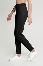 Брюки из трикотажного поливискозного полотна джерси, прямого кроя. По талии притачной пояс на внутренней резинке. По переду застроченные защипы. Боковые карманы с отрезным бочком.