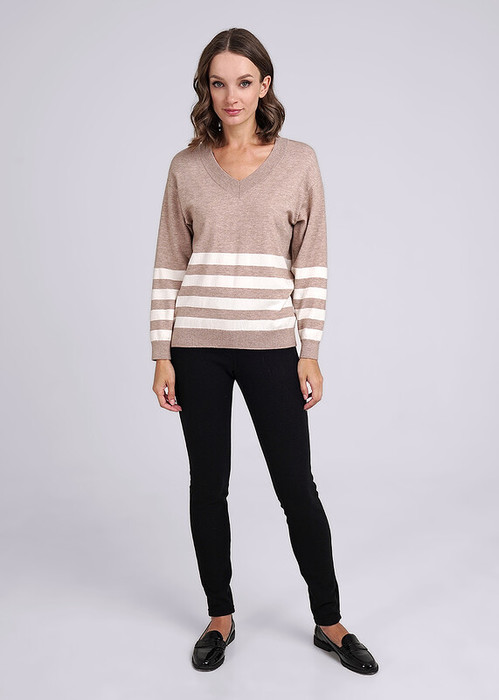 Брюки-лосины из трикотажного полотна с начёсом. По талии отрезной пояс. По спинке кокетка и накладные карманы. Спереди нефункциональные карманы и гульфик. По переду вдоль лосин защип-имитация лампаса. По деталям двойная отстрочка.