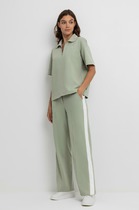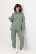 Брюки прямые спортивные из трикотажного полтна футер. По талии притачной пояс на внутренней резинке. Боковые карманы с отрезным бочком. Боковые швы переходят на перед.