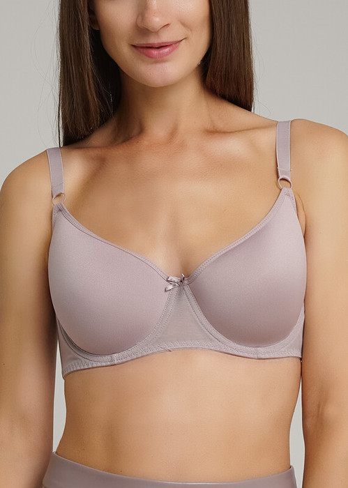 Бюстальтер из эластичного сетчатого полотна. Обладает моделирующим эффектом. Формованные мягкие чашки на каркасах выполнены из многослойного, ""дышащего"", сохраняющего форму материала с внутренним слоем из монофила.Центральная деталь декорирована атласным бантом. Бретели эластичные, не съемные. Ширина бретели варьируется от размера (70С, 75С, 80В - ширина бретели 1,2 см, остальные размеры 1,5 см.)