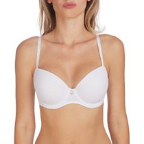 Бюстгальтер балконет с формованной чашкой. Выполнен из эластичного кружева. Бретели декорированы "ушком" из сетчатого полотна для визуального увеличения груди и лучшей поддержки.