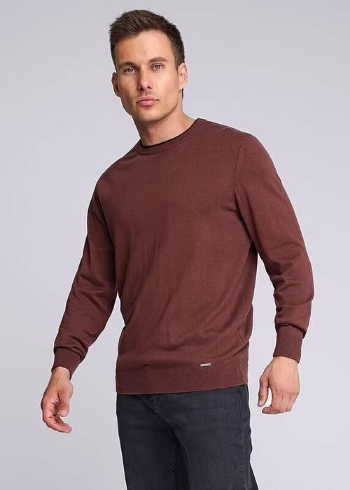 Мужской базовый вязаный джемпер с круглым вырезом горловины и длинным рукавом. Джемпер из смесовой пряжи с хлопком, дополнена интересными акцентами фирменной фурнитуры. Модель относится к базовому ассортименту, которая подойдет к любому низу.