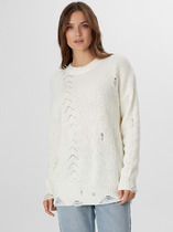 Вязаный джемпер с жаккардовым переплетением. Длинный рукав со спущенной линией плеча. Круглый вырез горловины.