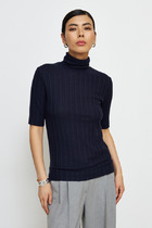 Вязаный джемпер прямого силуэта из хлопковой пряжи с добавлением акрила, переплетение ""косы"". Втачной длинный рукав. Округлая горловина с бейкой. По низу изделия и рукавов манжеты.