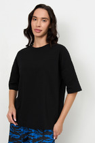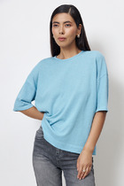 Джемпер свободного кроя из трикотажного полотна. Длинный рукав со спущенной линией плеча. Округлая горловина с вязанной обтачкой. Спереди вышивка. Сзади средний шов.