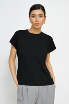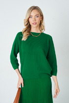 Джемпер прямого силуэта из трикотажного полотна джерси фактурное. Округлая горловина с обтачкой. Длинный рукав реглан,сверху по плечу вытачка. Спереди вертикальные резы с карманами в шве и закреплением мешковины. Боковые разрезы.Спереди вышивка.