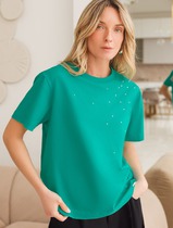 Джемпер из трикотажного полотна с эластаном- кулирная гладь. Втачной короткий рукав. Двойной перед. Фигурный вырез горловины.