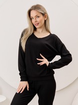 Джемпер свободного кроя из вискозного трикотажного полотна. Округлая горловина с обтачкой. Цельнокроеный рукав длиной 3/4. По переду и спинке отстроченные резы. По спинке средний шов. По бокам небольшие разрезы. Спереди принт фольга.
