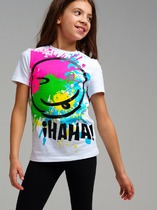 Актуальная футболка умеренного обьема из 100% хлопка отлично впишется в твой летний гардероб. Горловина оформлена кашкорсе. По центру переда трендовый принт.