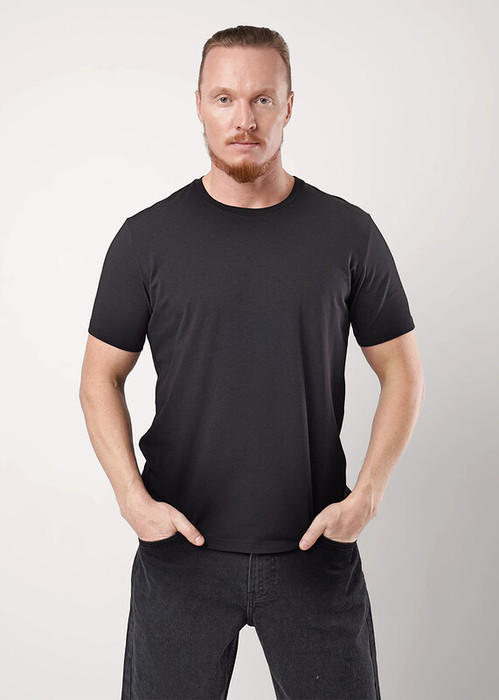 Базовая мужская футболка из хлопкового полотна с эластаном. Модель с круглой горловиной и втачным рукавом. Отличный вариант на каждый день.