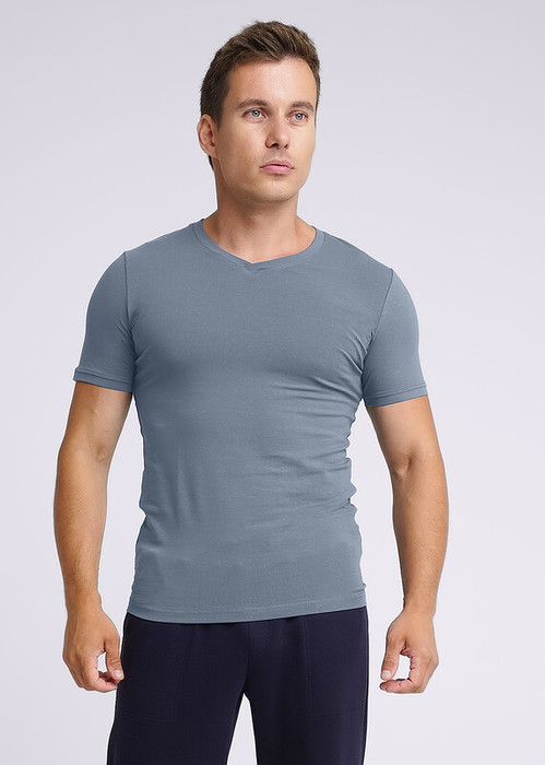 Фуфайка базовой посадки, v-образный вырез горловины, короткий рукав.